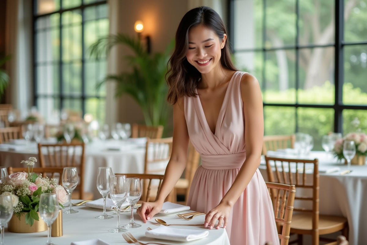 La liste d’invités s’élabore avant de s’attaquer au plan de table, exercice qui réclame doigté et sens de l’équilibre relationnel. Pour garantir une atmosphère fluide, chaque détail compte : le parcours des convives, la facilité d’accès aux différents espaces, la cohérence entre le fil rouge du mariage et les équipements retenus.